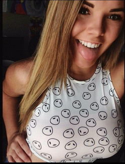 She isnt even that big. My tits would tear that tiny shirt in half.
