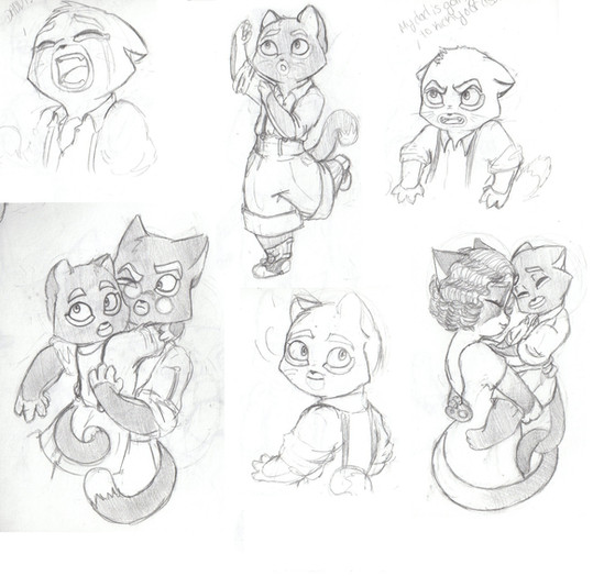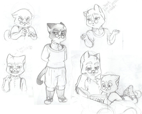 Ah, it's all coming back to me. Slowly, and in pieces, but it's coming back. I think I'm stuck now in some weird hybrid of the lackadaisy style, and the disney style I'm going for. Ah well, it's cute all the same. I figured since I did Lotte and Mordecai minus the fur, I should do Justin and Todd.Also, I've decided that Justin needed to be younger, closer to Todd's age, so instead of 12-ish as he was in the very first picture of him I posted, I think I'll make him around eight. Todd is still his adorable six year old self.
