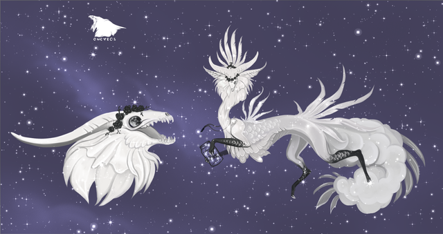 #anthro #anthrodragon #anthropomorphic #digitalart #dragon #feathers #fluffy #space #stars #white #wings #anthro_dragon