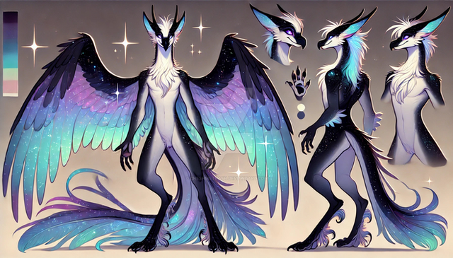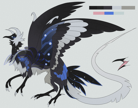 I couldn't decide between two color schemes, so in the end I've decided to just make them both OCs.This is one of the fluffy dragon-y sisters I wound up making, this one is Galatea. I was so indecisive about the color schemes that I actually dreamt I was working on figuring it out, and that's when this one came to me. It wasn't exactly what I had in mind with the night-sky look I was originally going for, but I still liked it enough that I couldn't drop it.