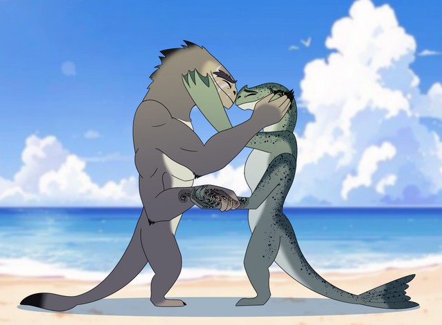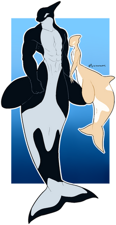 #albino #anthro #anthropomorphic #cetacean #couple #digitalart #killerwhale #orca #orcawhale #romance #shark #whale #killer_whale #orca_whale