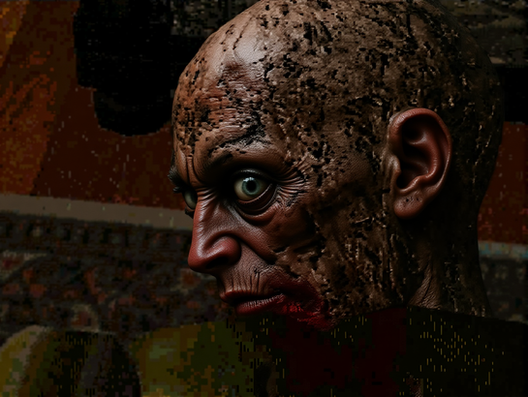 Thanks! I wasn't sure what kind of a skin texture to give him; obviously a normal, healthy one wouldn't do. I ended up working with a wrinkled, almost mummified look.