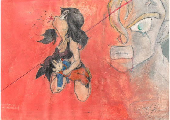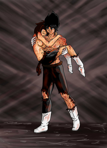 Yay! First comment and I loves it! There hasn't been new ChiChi/Goku art in a while, so this is definately be a treat. Wouldn't it have been nice if Goku actually had been this heroic towards his own wife??