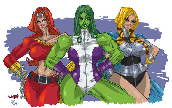 All three ladies are beautiful and I love my fav. gal, She-Hulk's, outfit and the poses are breathtakingly gorgeous.