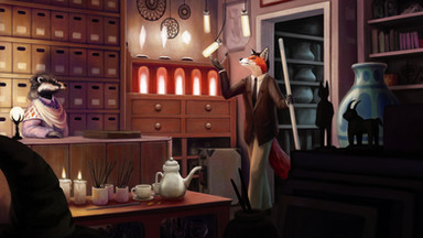 Is the badger blowing the dust off an old book, or does the dust magically rise on its own?