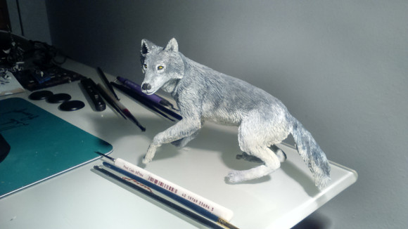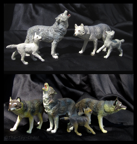 Photograph of model wolves I repainted, one is Silverfoxwolf and another adult.Related content