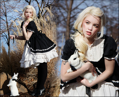 I clicked on this picture expecting only to find a lovely lolita(which I did find!) but I found an adorable rabbit that shares my name, as well! Im honored to have the same name as such a cute little bunny. I love that breed of rabbit! Theyre so cute. They look like they have eyeliner on.