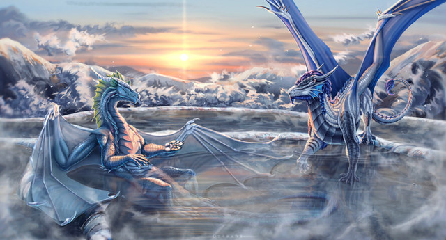 #dragon #dragons #hotspring #illustration #sunset #hot_spring