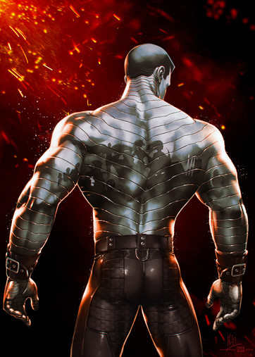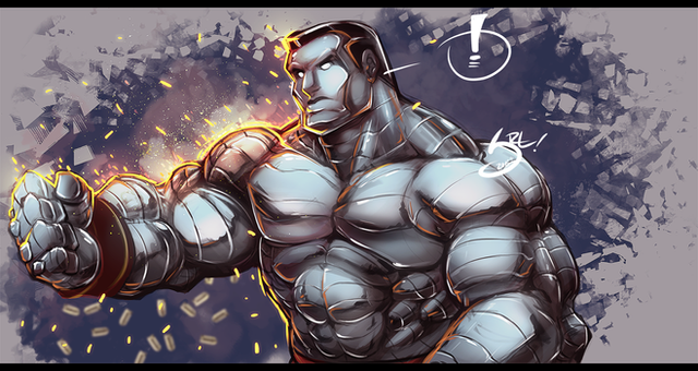 Wow. Your use of lighting here is amazing, coupled with the bare muscles and the skin changing from skin to metal really captures the power of Collosus.