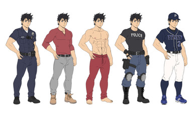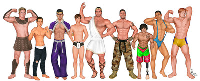 The hunks... The muscles... So many in one spot? Haha very exciting hehe. They look great and so different, it's hard to choose which one I like the best...Β I think it'd be close to the man in the suit because muscular men in business attire are so sexy <3 and the long haired one because guys with long hair areΒ sexy too xD But the guy on the left right looks inviting with that warm smile haha. Sorry, just having fun. Your characters look great. Very nice job.