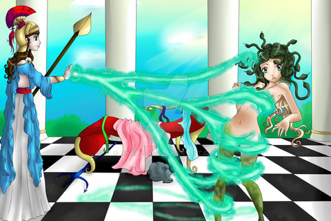 #asfr #garden #girl #ladybug #medusa #statue #stone #temple #turn