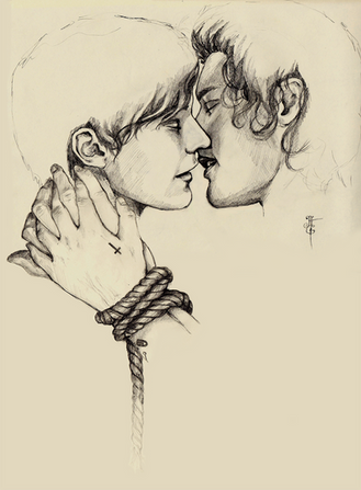 uhm...super blushy jacksepticatI dunno....slightly NSFW because of bondage refs, bruises and cuts etc.?