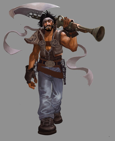 Some finalized art of General Gault, a guy I'm gonna be using in a Glyph side-story eventually. Be's basically an eight and a half foot tall one man wrecking crew. His arms can become giant harpoon launcher and his shoulders retract his chains into his body to drag back prey.Related content