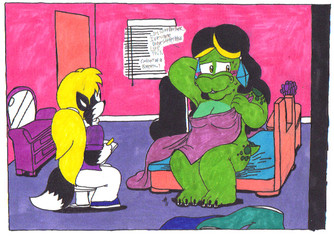 This one was from my good friend who got the idea of a scene in which pup Snowy walk in the bathroom while Zabu was getting out