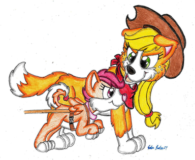 #canine #dog #fanart #female #gal #girl #husky #poddle #scootaloo #border_collie #my_little_pony_friendship_is_magic #sweetie_belle #apple_blom