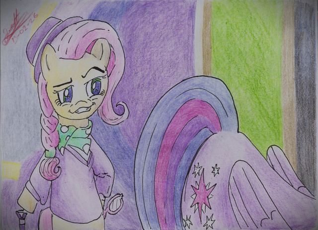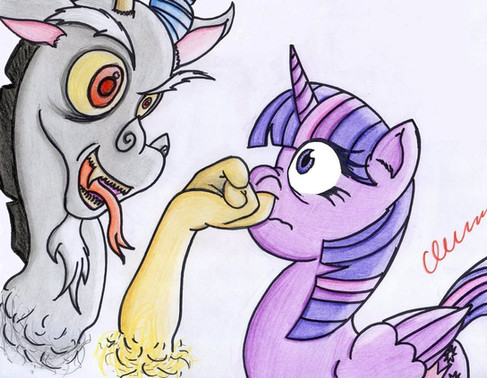 MoonHowler: "Seriously Barkle, don't you have something else to do other than take time away from me from studying. seriously"Twilight Barkle: "C'mon Moonhowler, let's play"