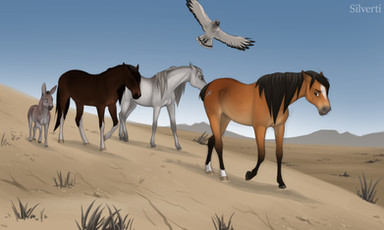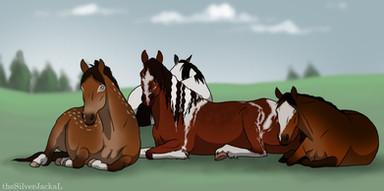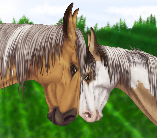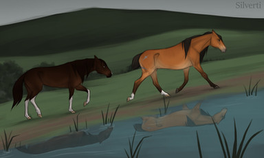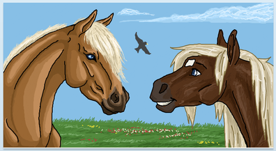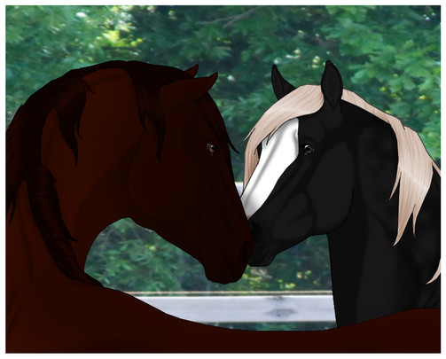 After a good wash to remove all of his body pain that was beginning to smudge, Falcon was put in one of the yards with his new mate Gully. Although he was a bit of a jerk at first (pinning his ears and giving a few feeble kicks), he soon grew to like the big chestnut stallion. And Luther saw no problem with making friends with teams in different tribes.