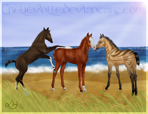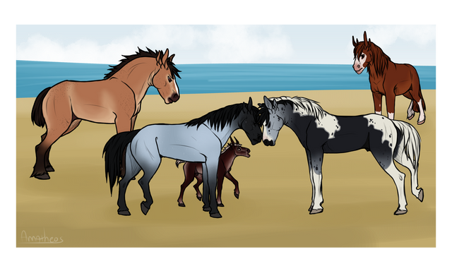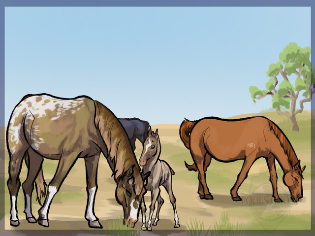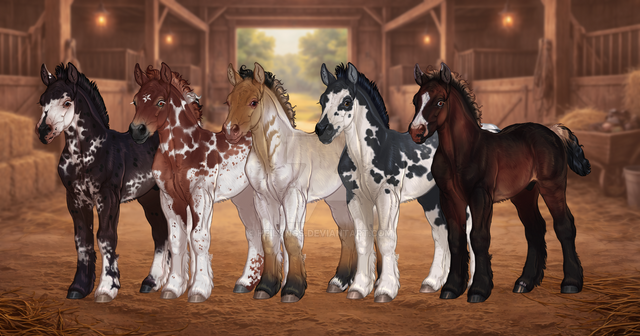 So I was looking at my Schleich model horses and decided to draw some of them into my Nords (and Flicka, who is NOT mine!)The models I used as references are: pinto mare, knabstrup foal, tennessee walker foal, appaloosa foal. Thanks to those who tried to guess!