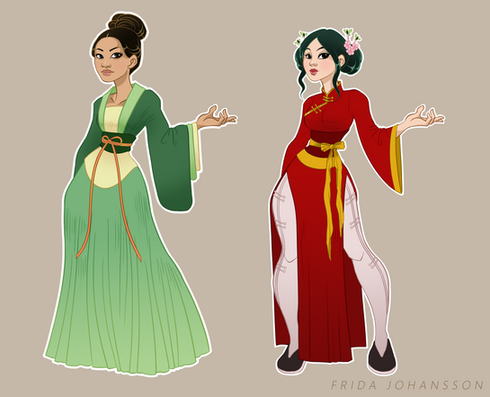 As I said I based the characters on Mulan, Jasmine and Pocahontas which made it natural to take reference material from their time periods. Circa 1600 for the Native American since Pocahontas (Powhatan) has existed (duh). For the Chinese character I picked the Wei dynasty (Northern) since one play places Mulan there. The Arab character was a bit tricky since Arabia was so large. I chose to place her somewhere close to modern Israel and Jordan but in the pre-Islamic period.