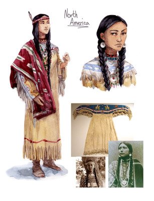 The first one I designed with as trustworthy material as I could find, which was kinda hard since, for example, the paintings and sketches that illustrates the Native Americans are drawn by Europeans who drew them as a way to display for the people in Europe how the Natives looked. This often resulted in exaggerating decoration to make them look more exotic. So I also searched for journals describing the fashion in a less flourishing way. But I’m aware that my images still may be a misrepresentation since I have a western “view”.