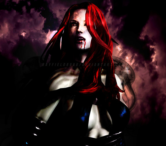 The bats look silly. They're just placed randomly and are way too tiny. The electricity is all over the place as well, and the rather cheap looking glow brings the quality of the picture down in matter of presentation. Overall the effect you were going for to represent her powers is just all over the place with little consistency. Reduce the amount of bats for example. Make the black mist look more natural and misty rather than dusty. And make a wider shot to get a bit more of the background into the frame, so that you can place the bats in not only fewer places, but better, more logical ones. With such a small frame, and with so many bats and lighting, the elements just end up look silly because there's no suggestion of movement. They're just stuck there, basically tacked onto the picture.