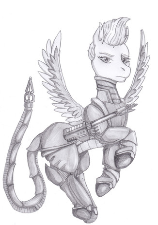 This is pretty much the defining picture of my character. I use it as my 'portrait' when it's needed, and it sums him up. You can see his missing left eye, and bionic left arm, and the expression on his face and his looking into the distance at something really sum up the kind of character he is - noble, brave, and strong-willed.I'm quite fond of this picture, even though it's now a couple of years old. The only I'd change about it if I could, woud be to give him shorter hair!