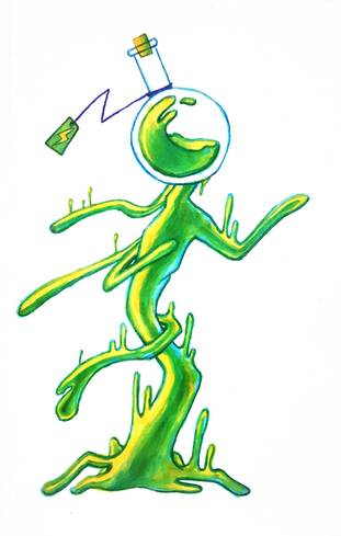 A slime monster created through alchemy. Rose is a devious and wicked sort, though most of her fellow alchemical slimes are much nicer.