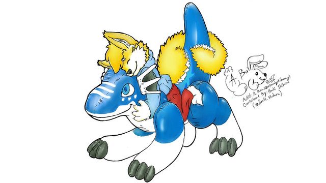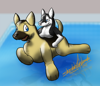 Here's a wonderful piece of artwork made by ! It's Silver (my character) riding Fenris, my giant inflatable wolf. He looks like he's really into it; I'm sure both of them are enjoying themselves. <3Thanks so much for this, man! I love it! <3