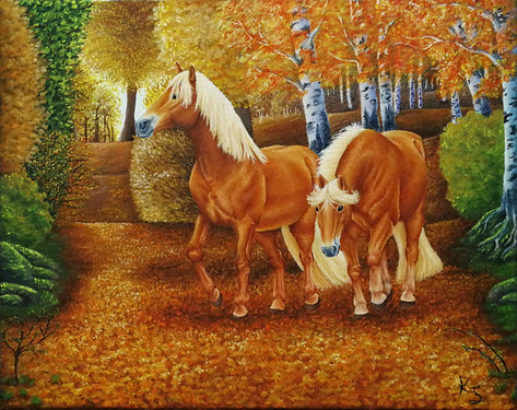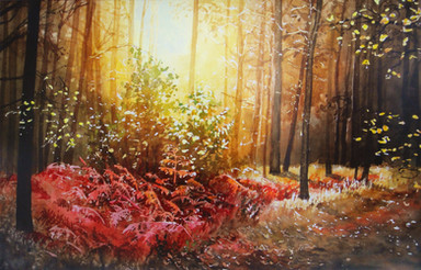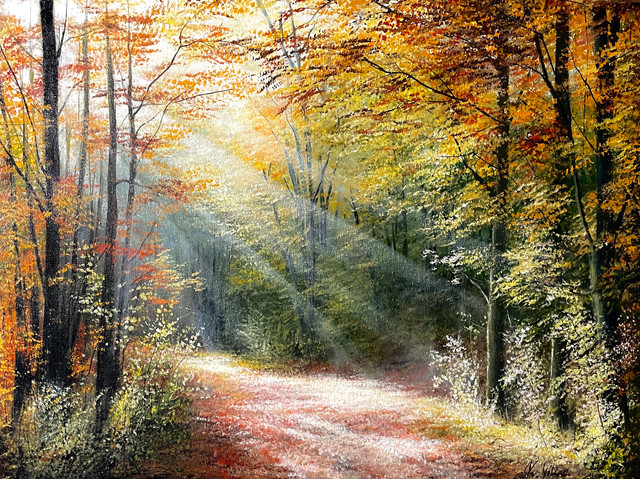 Painting of the an autumn forest in the sunlight. First time I've painted light rays, hope it looks fine!Oil paint, on 40x50cm canvas.