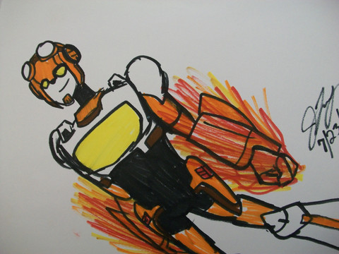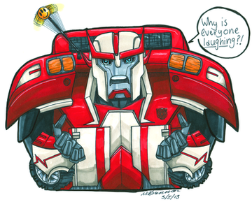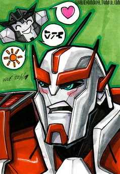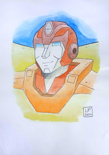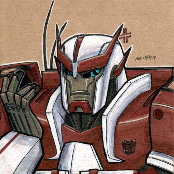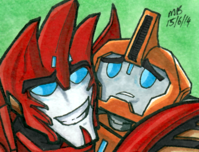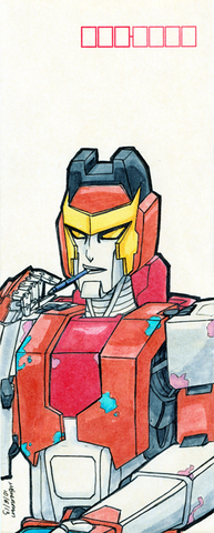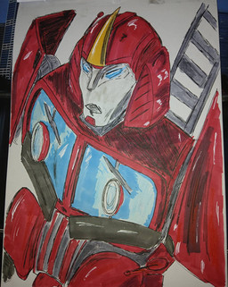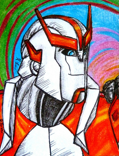 I picked up a multi colour note pad a long while ago with the intention of drawing a whole heap of the lesser drawn TFA characters. I still might draw some of the mains, should their colour be approximately close to the note pad colours.Oh yes, the Note Pad series makes a return. Again! In time for Season 3 of TFA. This is the first of 10 (only 5 will be uploaded now though) new notepads. The first 5 are characters that we've seen before, but I've neglected to get around too. And we thought Sunstreaker and Sideswipe were trouble... they weren't jets... with flame throwing abilities.