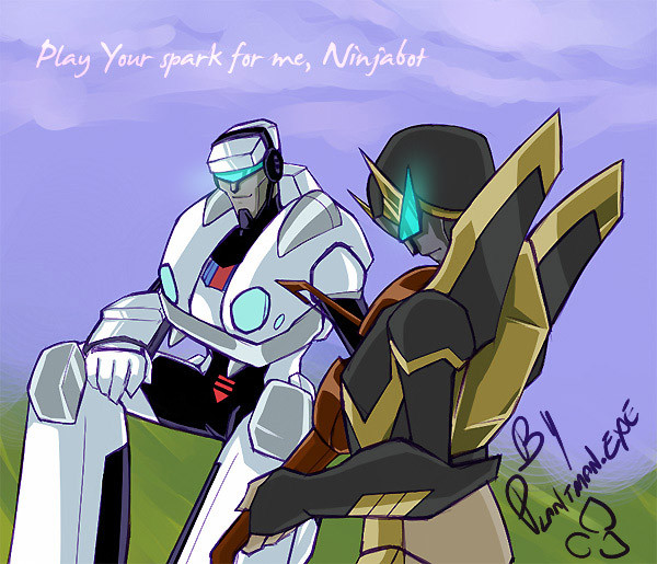 In lieu of having a proper Halloween picture this year (I’m having an art block of sorts and this refused to be finished last week so I could hammer out a Halloween pic) have a sparkling Drift struggling to lift Wing’s great sword.I know it's not the proper frame for Drift to have while with wing but I ended up being so tired that I couldn't have been bothered trying to adapt his mini-series appearance tin to the sparkling size when I've already got a sparkling MTMTE drift frame down pat in my head.
