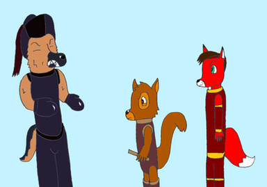 Thanks, I was using an old dog-breed encyclopedia (very old as I can't seem to find the breed "Bull-Boxer" anywhere that matches what was in the book) while I was making these characters and decided to use the two fighting breed from Japan as one super loyal super ninja dog.