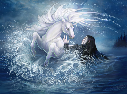 This picture has several meanings to me. As those of you who have seen my New Year's greeting for 2002 ([link] ) may have noticed, the picture for 2004 is inspired by the first image's atmosphere and colors. I wanted this to be ethereal, spiritual and inspiring.The orcas are there for a special reason; one of the things I'm most happy and proud of for 2003. Though I am a poor little starving artist, at the beginning of last year I decided I could still spare a handful of money every month, and so I decided to support the World Wildlife Fund, WWF ([link] ) and their Orca Project.
