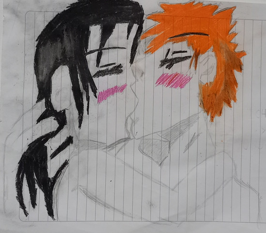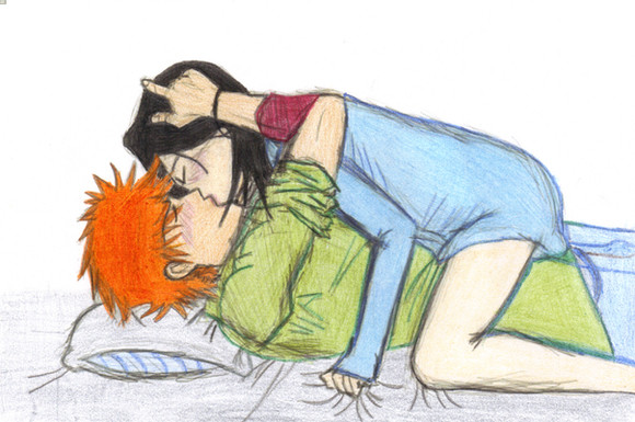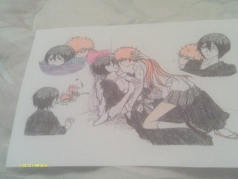 hmm a short one page doujinshi? hehe a few mistakes at the hands but enjoy it hmm ichigo gets kissed and hugged by rukia and then she wants to "love" him but apperently she got the wrong ideea or ermm you guys decide the endfav & comment