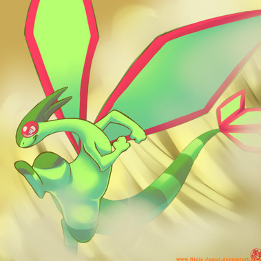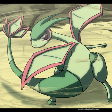 I just wanted to draw Flygon again. ^-^I didn't know what to do for the background (like always) so I did something like he's going through a sandstorm to reach the sky. >v<