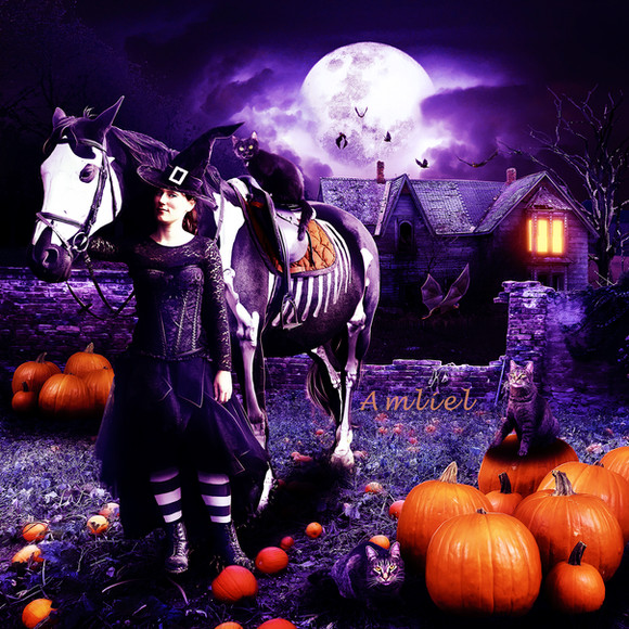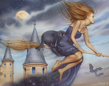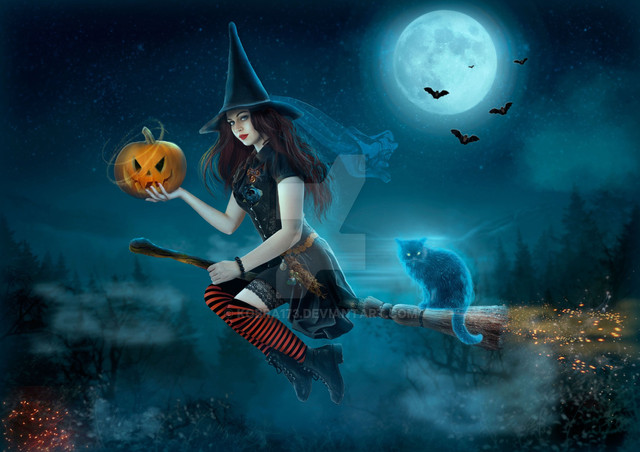 #witch #broom #digitalart #fantasy #halloween #photomanipulation #rabbit #skyclouds #witchhalloween