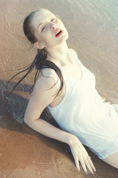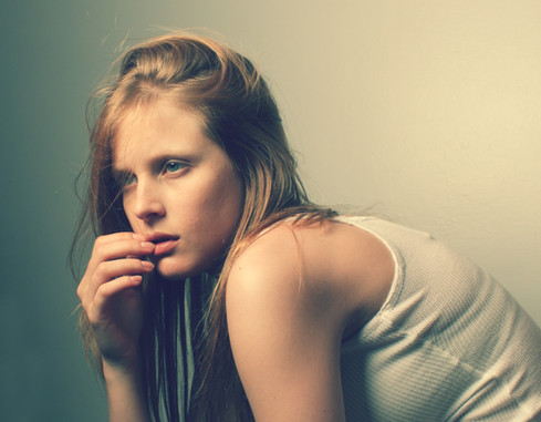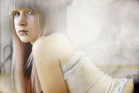 light is beautiful and the cold colours are in contrast with the warmt of her pose and stare!!