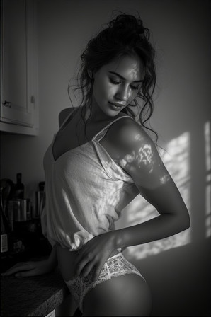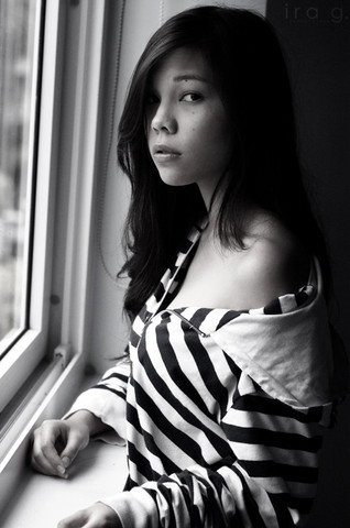 I like it, but I think if there wasn't as many miscellaneous things in the background, it might be even better. The plant and bowl in the background sort of draw your attention away without providing much context for the photograph. Same thing on the left side of the photo. I think the black and white works really well.