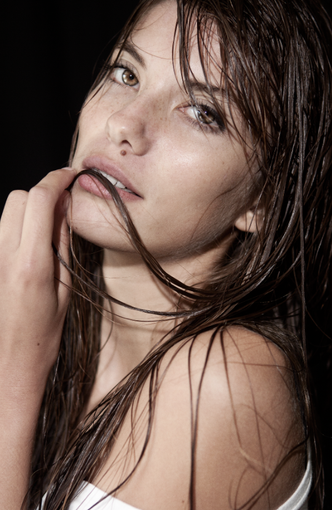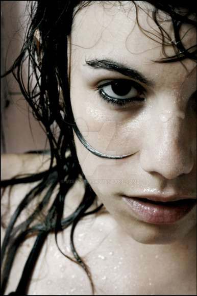Im in love with this shot. So much to see and well in details. The work of B&W is always interesting. And when there is a lovely model and water on her face its much more to see.