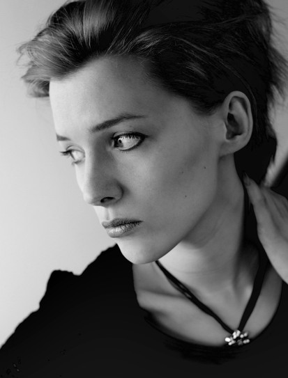 I love her expression, she is a lovely model. Nice shot, and I love the shading. Well done!