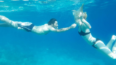 That's so neat. I love underwater pictures like this. It must be hard to stay under water like that, and kiss someone. Lol!