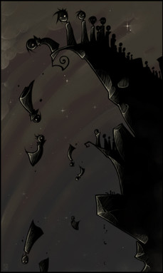 I love the textured paper, and how the 'things' coming from behind aren't the dominant object. The subtle textures on the hill are also a beautiful yet subtle touch. It reminds me of that scene from the Lion King with the pit of thorns (got a disney theme going on here today )