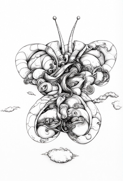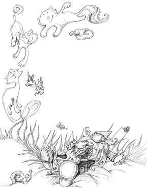 A bit of the old pen and ink and a solid dose of stream-of-conscious strangeness. Classic combo! There's a few friendly faces in there...A few subtle shadows and the background were added in post.