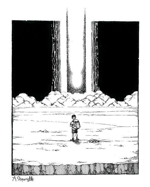 I keep getting recurring images of this scene in various forms when I sit down to draw. Lugging this beautiful weight up and down through all sorts of landscapes. I'm currently resisting the urge to think about it so instead I'll just keep going. I have a sneaking suspicion there's a little more to this place.