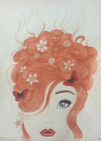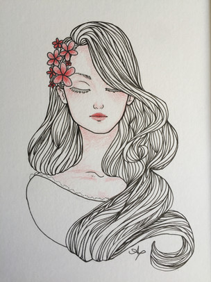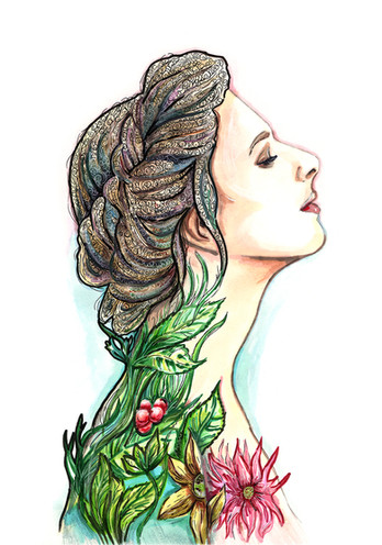 #bijoux #cheveux #dessin #drawing #encre #fille #girl #gold #green #hair #ink #jewels #portrait #traditionnel #vert #traditionalart