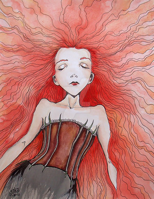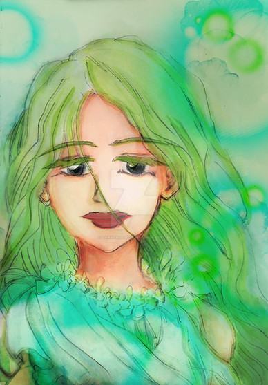 #argent #bijoux #cheveux #dessin #drawing #fille #girl #gold #green #hair #jewels #portrait #red #rouge #silver #traditionnel #vert #traditionalart