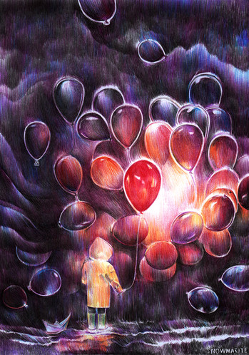 #ballon #dessin #film #georgie #halloween #motif #october #octobre #red #rouge #sang #bateauenpapier #ca2017 #grippesouleclown #balloon #blood #paperboat #traditionnel #pennywisethedancingclown #drawingtraditional #fanarttraditionalart #it2017