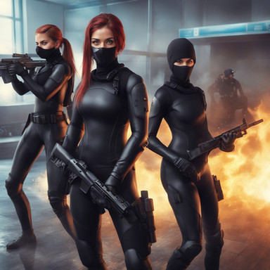 After school, they remained in their sleek black skintight bodysuits, crimson accents tracing their curves. The hallway lights flickered as they slipped into the shadows, their laughter echoing off the cold walls. The plan was simple: infiltrate the dorm room of their unsuspecting classmates and unleash the knockout gas. Mock them for the whole year.