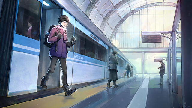 It is a post card that I brought to last year's Comiket.I like the atmosphere of the first train train.