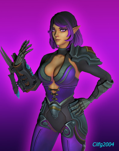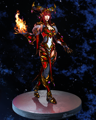 A picture of Syndra from League of Legends. I used a custom body model, modeled her clothes after it and attached the original head. I think it turned out nice.League of Legends is owned by Riot Games